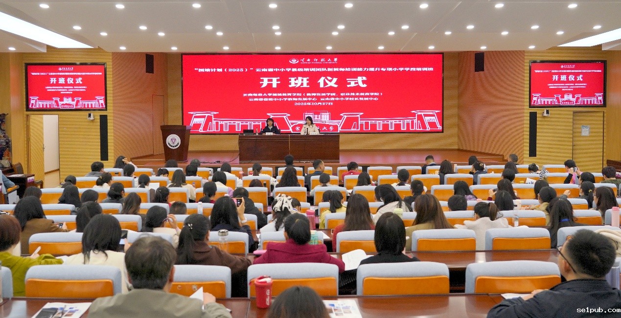 10月27日,由我校继续教育学院(教师发展学院、职业技术教育学院)组织实施的“国培计划(2025)”——云南省中小学县级培训团队新教师培训能力提升专项小学学段培训班在一二·一西南联大校区开班。学院党委书记邹飒、副院长刘应兰,项目管理团队以及来自全省各州县师训部门负责人、教研员、乡村学校和跟岗基地校的双校双指导教师,共计169名研修人员参加了开班仪式。刘应兰主持开班仪式。